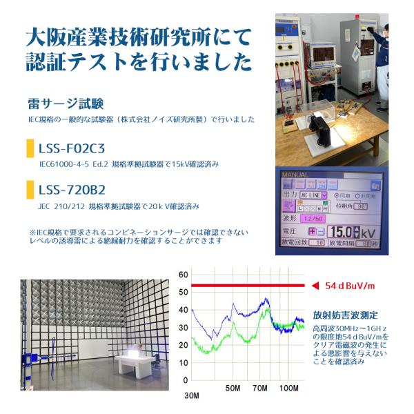 本電源は雷サージ搭載型ではないので、別売の雷サージ保護器<20kV>と併せてのご使用をオススメ致します。